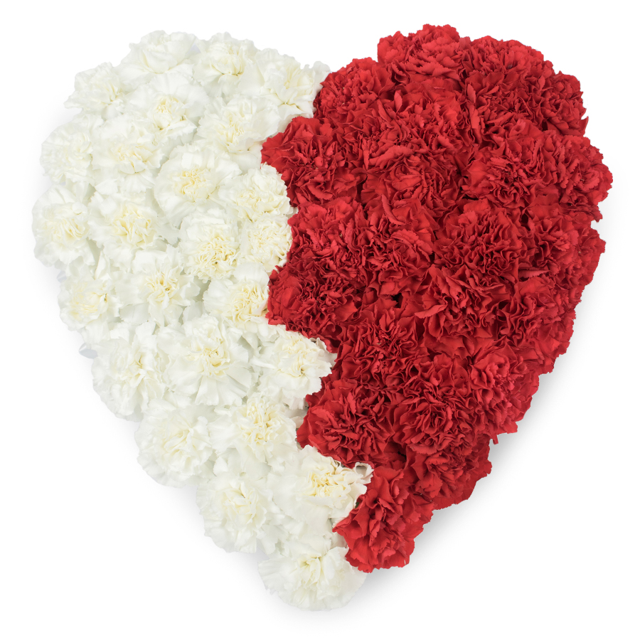 Treated as a work of art, our bouquet presents a harmonious balance of red and white carnations that speaks volumes of passion and purity. Hand-selected for premium freshness, each flower is arranged with intricate detail to create a design that is as elegant as it is unique. Perfect for expressing sympathy, admiration, or love, this bouquet embodies luxury in every petal.